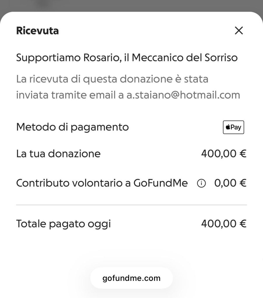 Con grande piacere condividiamo che, in occasione della cena di beneficenza, una parte del ricavato è stata devoluta a favore di Rosario, il Meccanico del Sorriso.